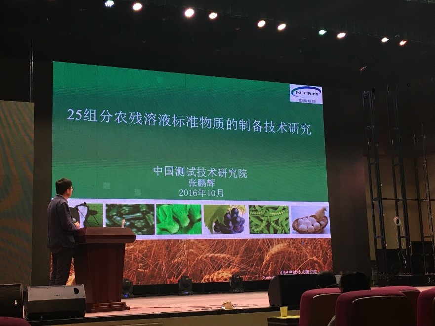 我院化学研究所张鹏辉同志在会上作了“25组分农残溶液标准物质的制备技术研究”报告,向参会人员展示了我院在复杂多组分农残溶液标准物质研究领域的最新进展,其投稿论文获得本次会议优秀论文三等奖。