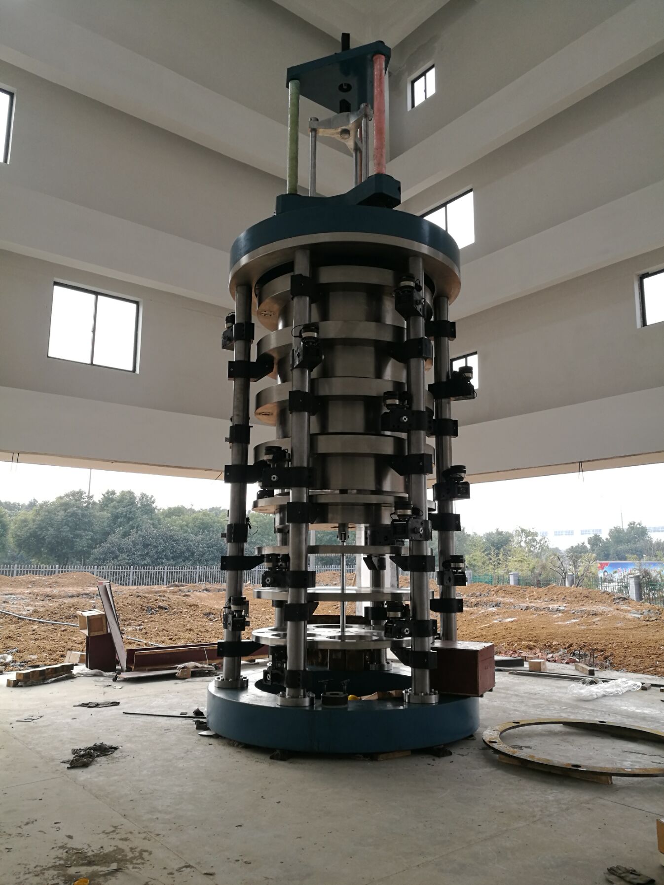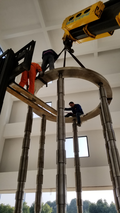 我院自主研制500kN静重式力标准机完成主体现场安装工作