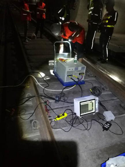本次机场线主要检测项目为轨道结构对排流网过渡电阻、钢轨纵向电阻和排流网纵向电阻三项。该地铁线路长约30公里,其中百分之八十为高架线,施工难度较大,同时受施工周期影响,检测时间紧张,我所检测技术人员通过积极与施工方沟通,采用左右线同步测量的方法加班加点开展工作,极大的提升了检测速率,同时规避了测量不同步产生的误差,成功解决了检测过程中的多种突发状况,按时保质保量完成了全部检测任务,受到施工方和业主单位的好评。