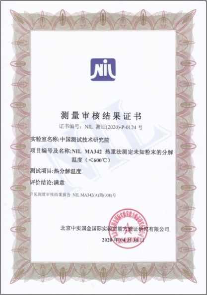 为进一步提升材料检测水平,确保出具的结果公平公正、合法有效,近日,我院机械研究所参加了由北京中实国金国际实验室能力验证研究有限公司组织的“物理吸附法测定固态物质的BET比表面积”、“热重法测定未知粉末的分解温度(<600℃)”两项能力验证,对材料热分析、材料比表面积测试能力进行考核和监督,结果均为满意。